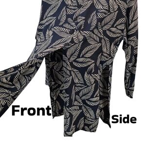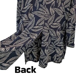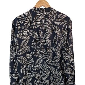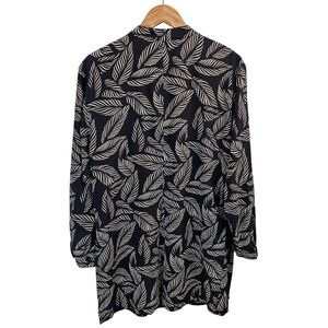 Jeannene Booher Silk Leaf Print Shirt Womens Sz 14 Black Button Up Split Hem