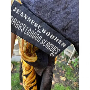 Jeannene Booher/Maggy London Scarves Signed Black/Gold Silk Scarf NWOT OS
