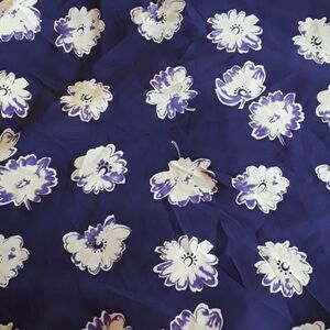 Vintage floral print skirt, 100% silk, in great condition. Side zipper. Colors: blue, purple, white. Gorgeous style and flattering fit. Colors: purple and yellow.