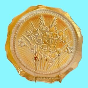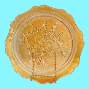 Jeannette 9” Carnival Glass Vintage 1950’s Marigold Iris & Herringbone Plate. Bright color, not faded. My grandmother gave me this plate in the 1970’s, so I know it is old. I am only selling it because I am trying to downsize.