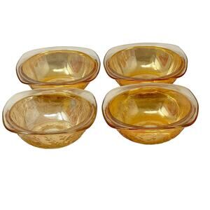 Jeannette Floragold Louisa Iridescent Carnival Glass Dessert Bowls Set of 4