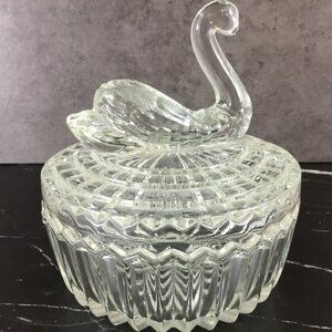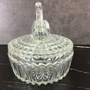 Jeannette Glass Clear Glass Swan Powder Jar Trinket Box
