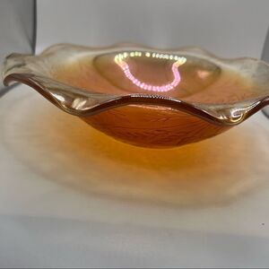 Jeannette Glass Floragold Louisa Ruffled 9.5" Bowl Carnival Glass