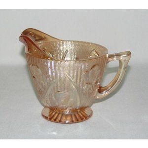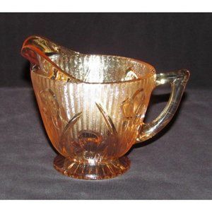 Jeannette Glass IRIS AND HERRINGBONE Marigold Iridescent Footed Creamer