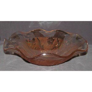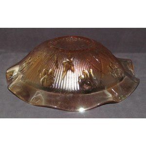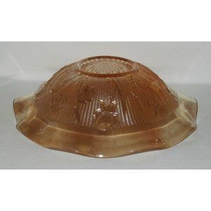 Jeannette Glass IRIS AND HERRINGBONE Marigold Iridescent Lg Ruffled Fruit Bowl