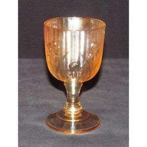 Jeannette Glass IRIS AND HERRINGBONE Marigold Iridescent Short Wine Goblet