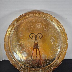 Jeannette Glass Iridescent Flora Gold "Louisa" 13.5" Platter Serving Tray