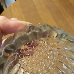 Jeannette Glass Relish Jar with Lid in the National Clear Pattern (Ribbed & Dot Design). Overall good condition for its age with a couple of minor issues as follows: Large chip on the lid. A few fleabites on the rim of the jar. Dimensions: 4 ½” tall (with lid) x 3” tall (without lid) x 3 1/8” diameter at jar opening. Look closely at the photos.