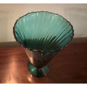 Jeannette Glass Swirl Ultramarine Vase 8.5 Inch Pedestal Aquamarine 1930s