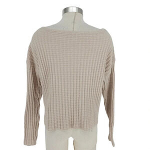 Jeannie Mai x INC Shirt Oatmeal Long Sleeve Cropped Waffle Knit Top