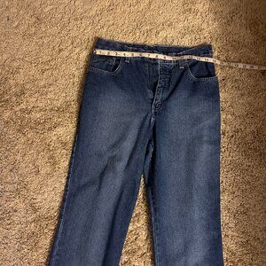 This is an excellent pair of jeans, lightly worn. It is 15 inches across and 44 inches in length from the top of the waist to the bottom hem.
