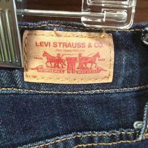 Dark High-waisted, boot-cut Levi's, never worn because they are too big!