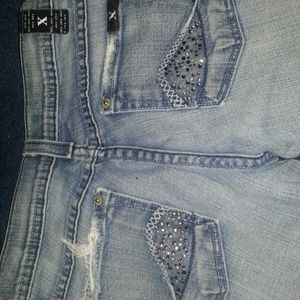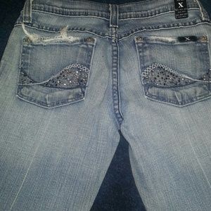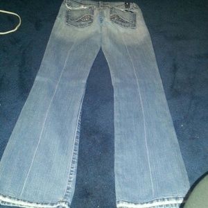 Super comfy flare bottoms.... nice fade to them... beautiful studded gems on the back pocket . Size 3 not 2 worn once