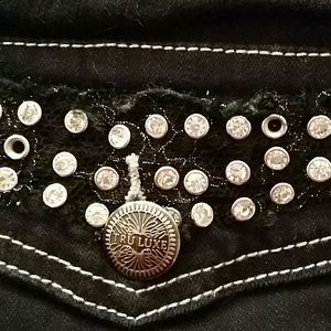 Very dark almost look black. Cute design on butt. Great condition. Only worn a couple of times.