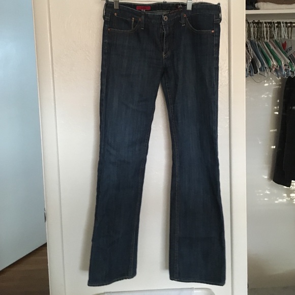 Size 30R AG brand "the kiss" blue jeans. Medium wash. Worn, but in good condition.