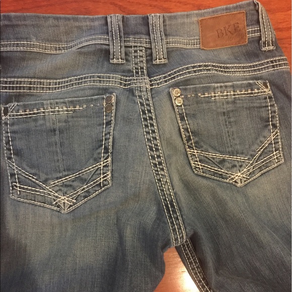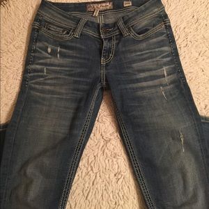 Light weight denim. Natural small tears in front.