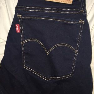 Dark wash jeans from Levi's. They are pretty comfortable and go with a lot of shirts!