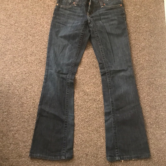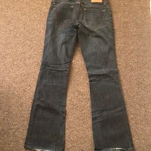 Size 2 regular flare American Eagle artist jeans in dark wash. Gently worn a few times, no longer fits me anymore. 99% cotton, 1% elastane. Lower rise. Smoke and pet free home.
