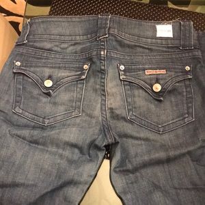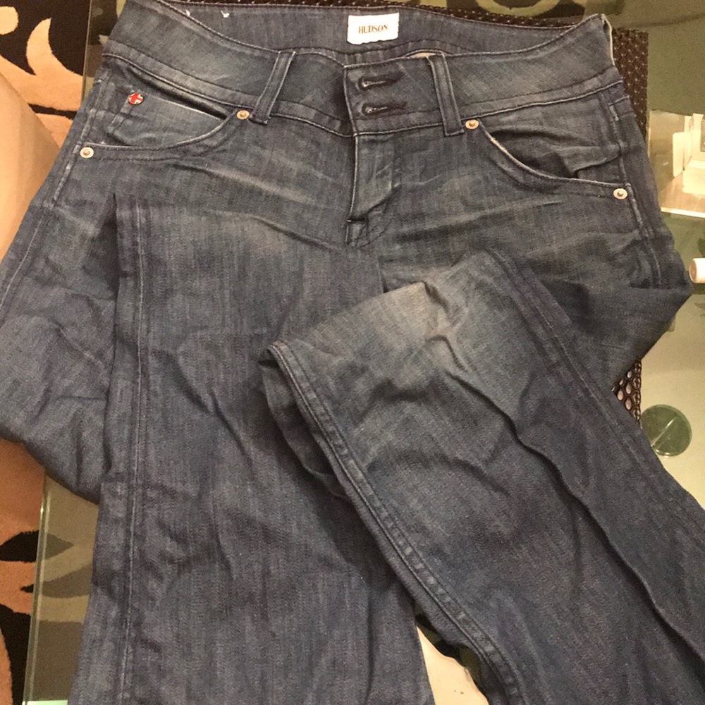 Blue washed jeans, form fitting, excellent condition