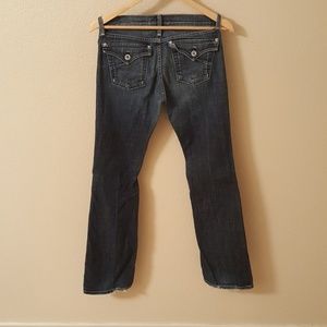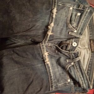 Nice jeans gently worn some scuff on the bottom..all in all pants are still in good condition