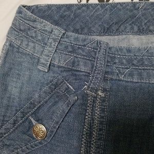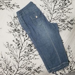 Cropped, drawstring, lightweight (great for spring/ summer), light wash color.