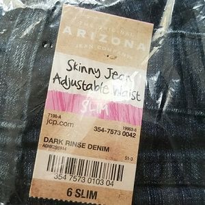 Brand new in plastic bag. I had to open the plastic bag to show you pictures. Slim Arizona adjustable waistband jeans.