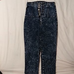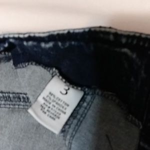 Dark blue, size 3, high waist, 6 buttons down front none missing, no rips, stains or anything that would alter the appearance of these jeans from the day I bought them.