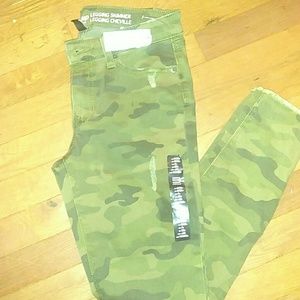 Camouflage distressed jeans with cut off bottom look