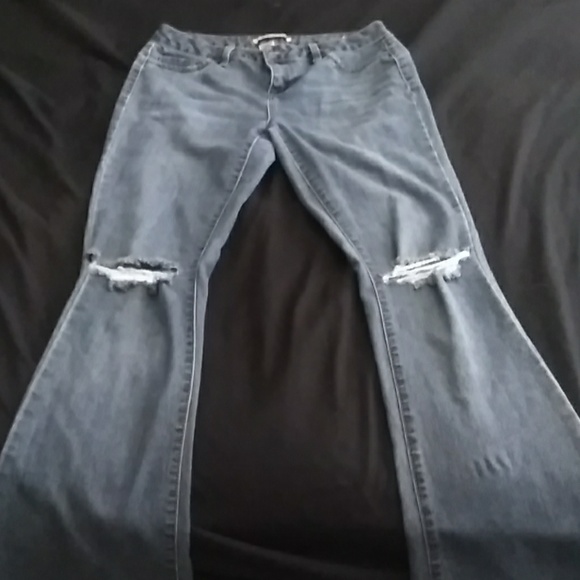 Size 6 jeans, worn a few times then lost weight. Rips on the knees are supposed to be there. No discoloration or wear or tear except where it's supposed to be.