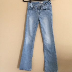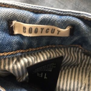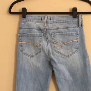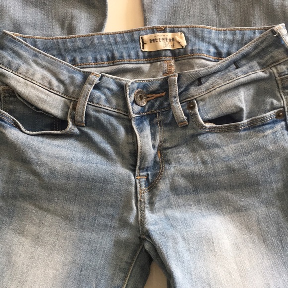 Measurements from waist (end to end) is 12 1/2inches. Rise from bottom of crotch to waistline (above button) is 7inches and the inseam from crotch to end of jean (length) is 30inches. Ankle is 7 1/2 inches