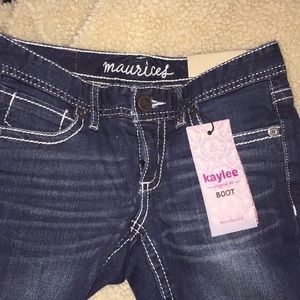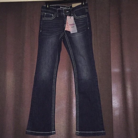 Brand new with tags “Kaylee” original fit Boot cut jeans from Maurice’s. Size: 1/2 short Waist: 14in. Length: 37in Inseam: 28in.