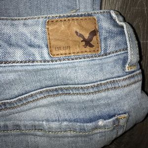 American Eagle light wash, holy, skinny jeans. In really good condition only worn a couple times.