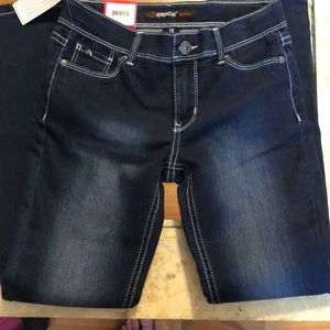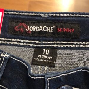 Never worn regular skinny fit size 10 (girls) Jordache jeans. Dark in color with fade on thigh area.