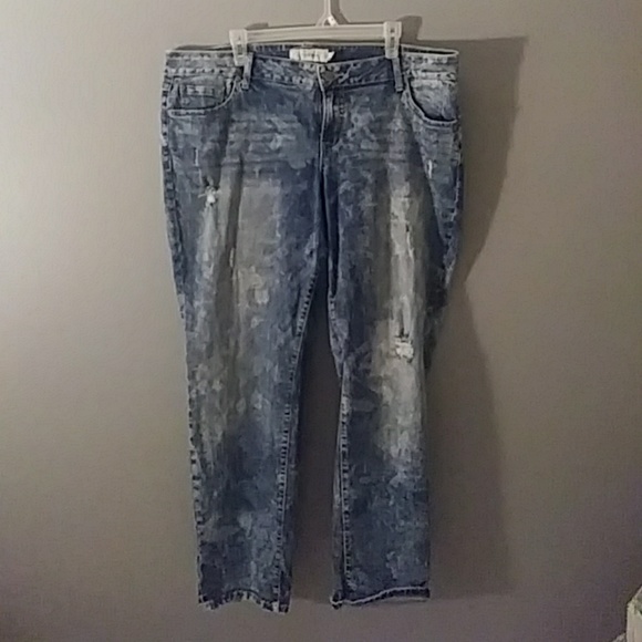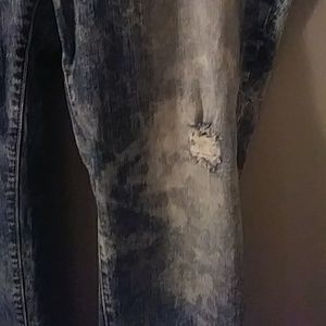 Blue demin with destressing, only worn once.
