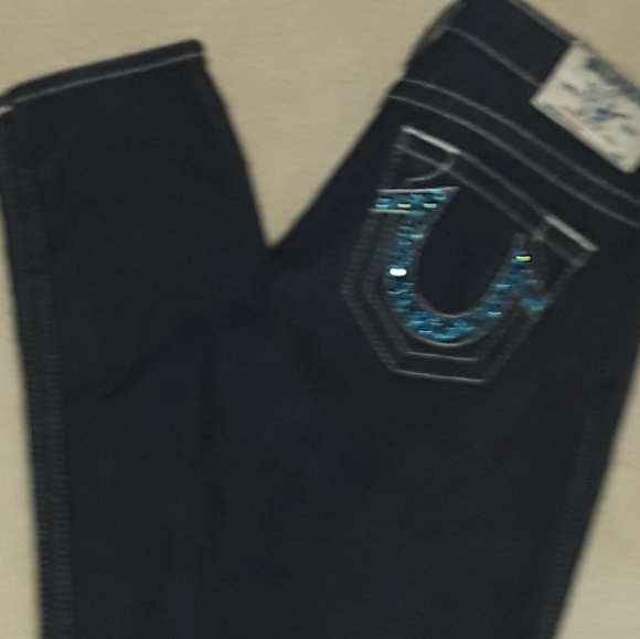 True religion jeans with turquoise rhinestone with a small imperfection that has been repaired professionally otherwise great condition