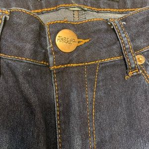 Stretchable dark blue ladies skinny jeans.