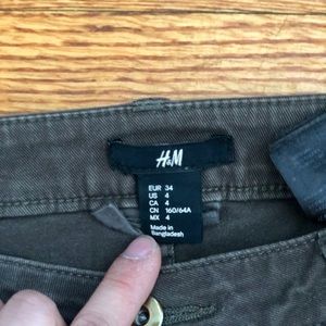 Olive green H&M size 4 (wore a few times) good condition still 2 hollister jeans size 5 short