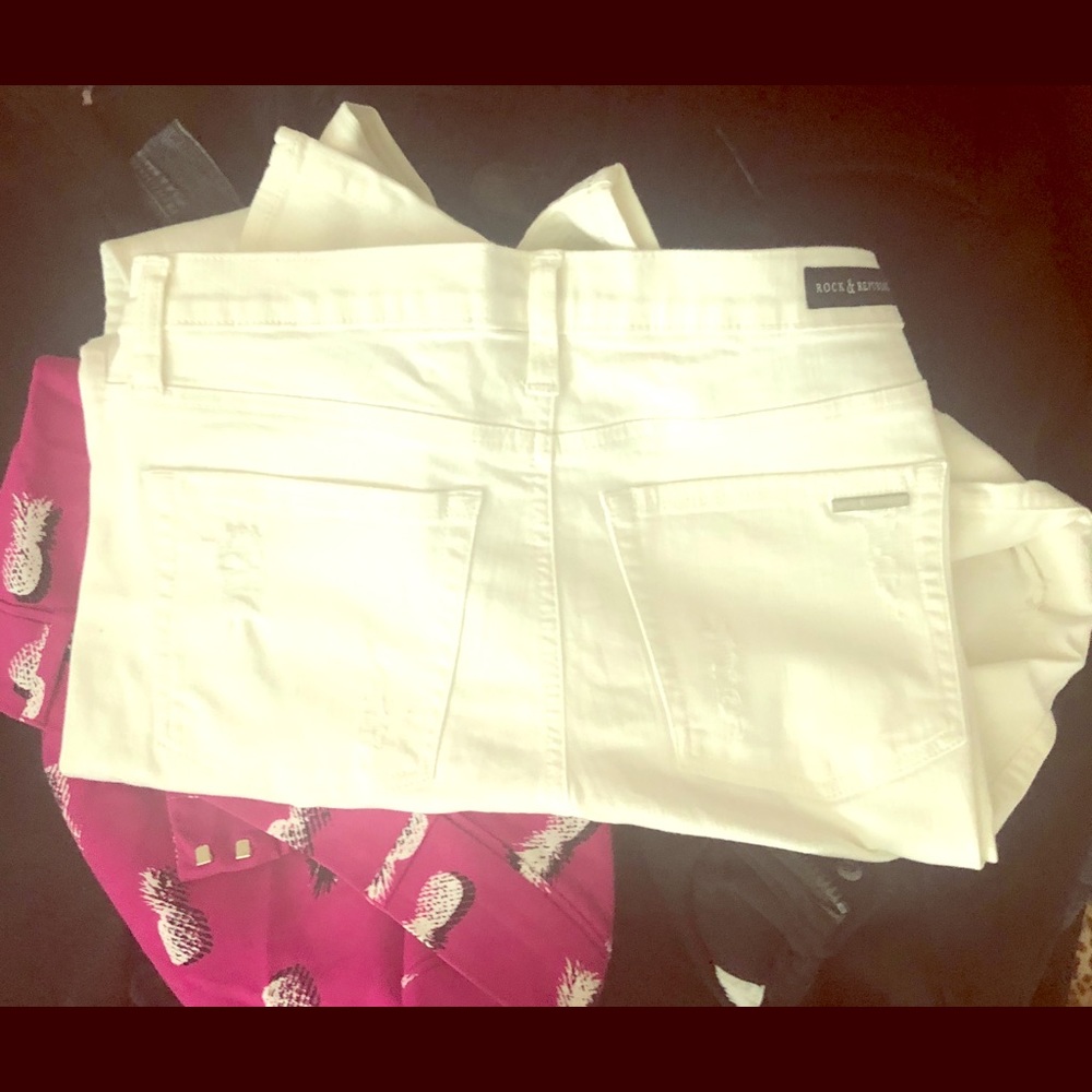 White rock and republic jeAns super cute no stains at all obviously I never wore them haha anyways they are my loss your gain I wish they fit :(