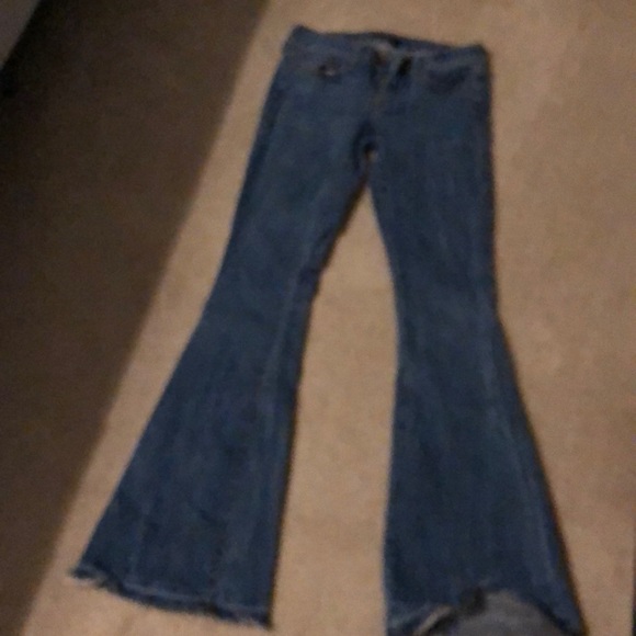 This wide-bottom Work brand stretch jeans fit perfect and look good with any style. I prefer a boho tank and wedges. Wish they still fit!