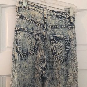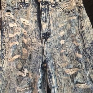 High waisted, acid wash, distressed jeans. Worn but in great condition.