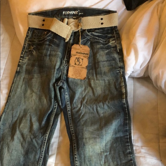 Straight legged jeans with stitched back pockets and belt included. Purchased at “The Buckle.”