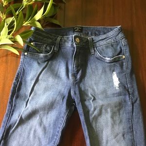 Super soft jeans. No knee holes. Loved these jeans they are extremely flattering! The ankle is super tight