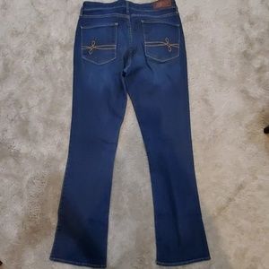 Dark stone wash Jean's that are barely worn! Stretch, comfy fit. Mid rise boot cut!