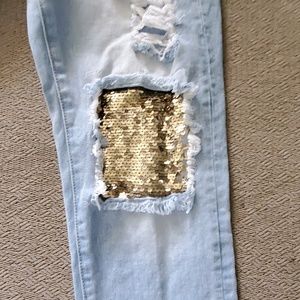 Light washed denim with sequins accents..great condition with no flaws