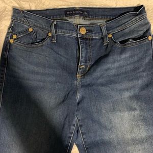 Rock & Republic blue jeans. Bootcut style size 12 small hole in back on bottom of right leg, besides that they are in good condition.