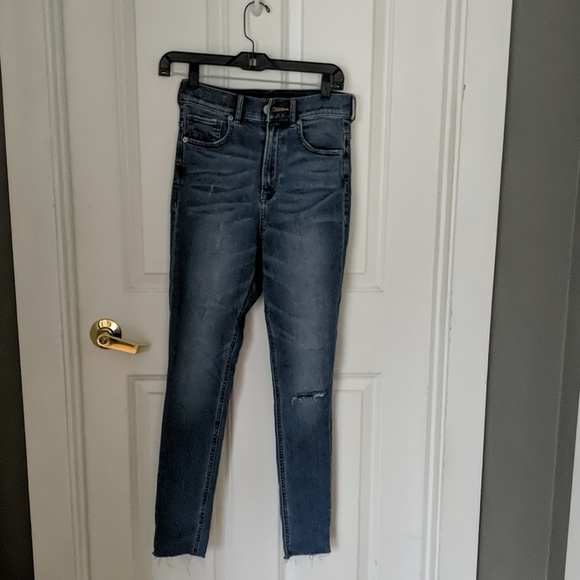 Blue jeans, super high waisted, worn twice