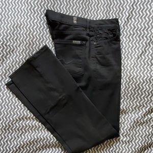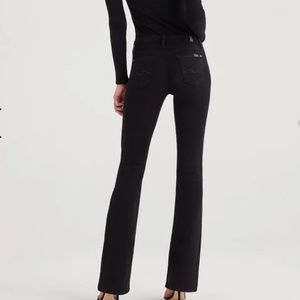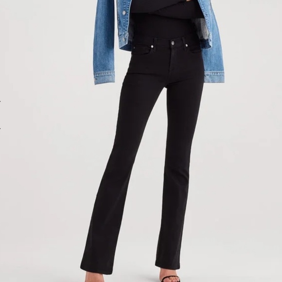 A slim-fit modern bootcut in our signature super soft & light stretch denim with a saturated black wash. Color still intact.
