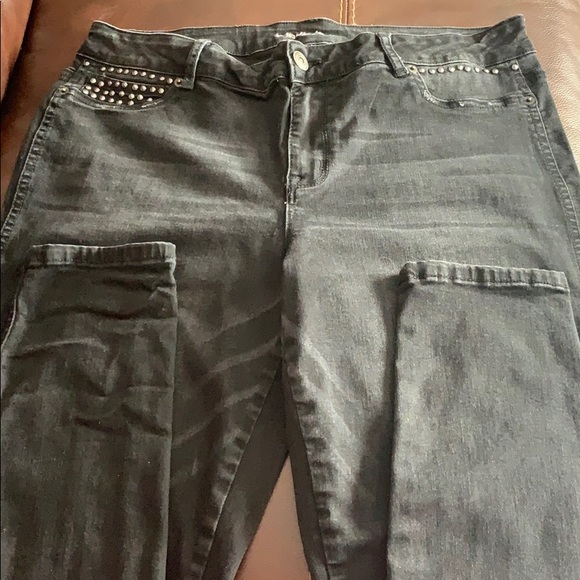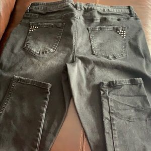 Maurices XL regular stretch jeans, skinny leg, bead embellishments, stone-washed black, great shape, so comfortable!