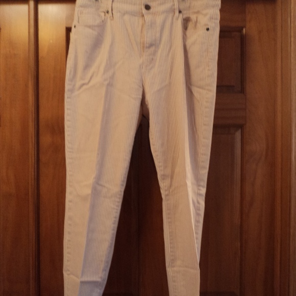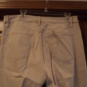 Salmon and Cream stripped Curvy, Skinny, Ankle Jeans. 98% Cotton/2% Spandex.