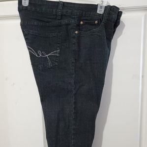 Nice fit straight Leg Stretchy pants Jeans, nice stitched design in back Pockets, never worn,inseam 30 1/2 inches